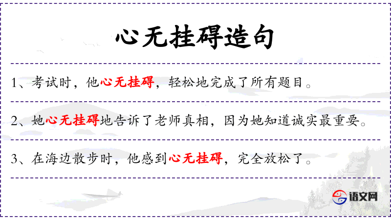 - 心无挂碍:形容内心没有烦恼或顾虑,自由自在。