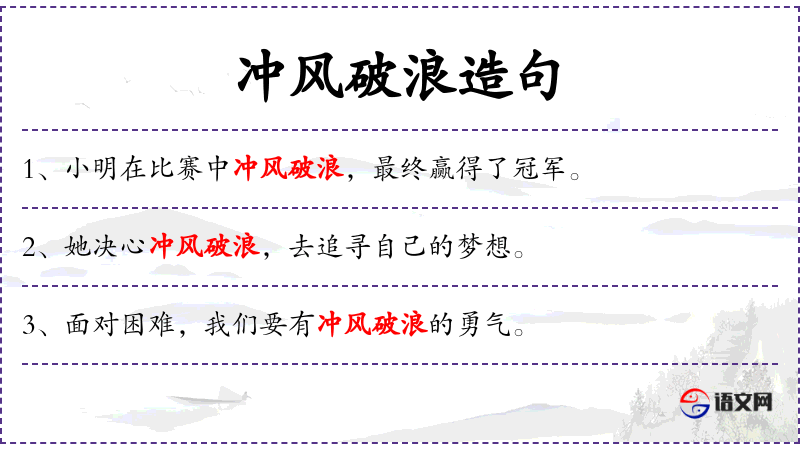 - 宾语:冲风破浪,勇往直前