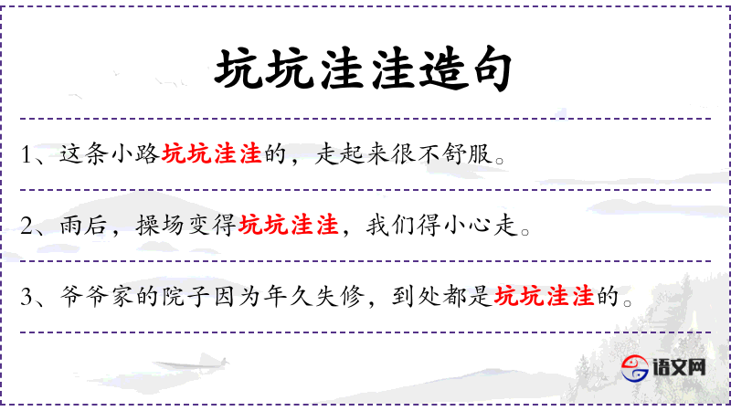- 宾语:“坑坑洼洼的地方”