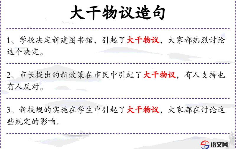 - “大干物议”这个表达在**文化中常用来形容广泛的讨论和争议,反映了人们对新事物的关注和不同意见的表达。