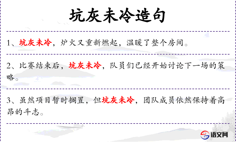 - 坑灰未冷:源自**古代战争后的景象,比喻战争刚结束不久,影响仍在。