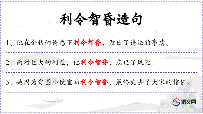 - 利令智昏:利欲熏心、贪得无厌