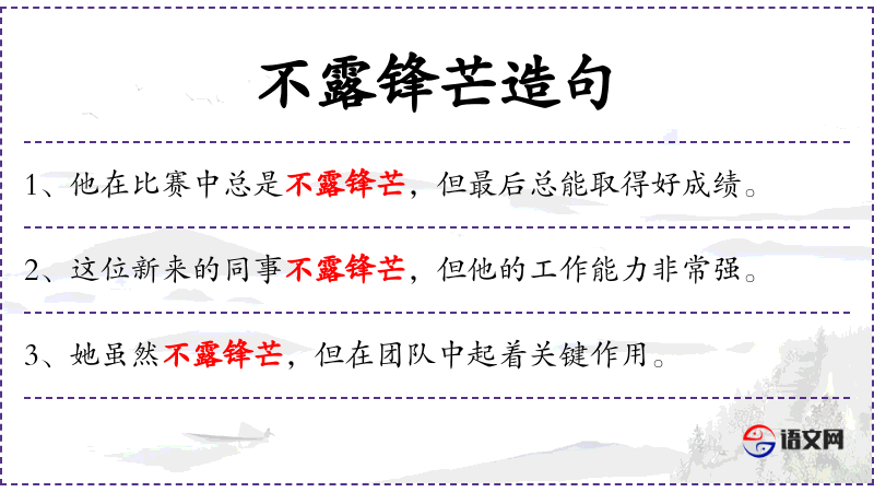 1. 【不露锋芒】 - 锋芒:比喻锐气或才干。不显露出锐气或才干。多指有意地将自己的才能、抱负等加以掩饰。