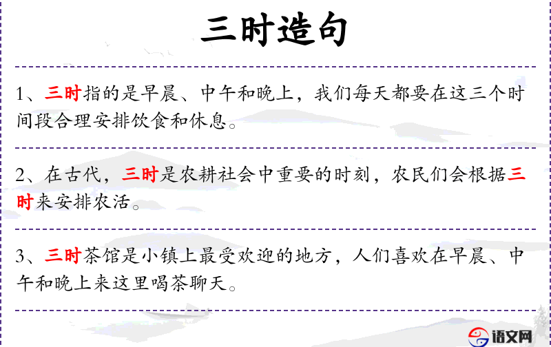 1. 【三时】 指春﹑夏﹑秋三季农作之时; 夏至后半个月; 早﹑午﹑晩; 印度分一年为热﹑雨﹑寒三时; 佛教谓释迦牟尼佛逝世后,佛法将经历的正法﹑像法和末法三大时期。一般认为正法五百年,像法一千年,末法一万年。见南朝陈慧思《立誓愿文》。