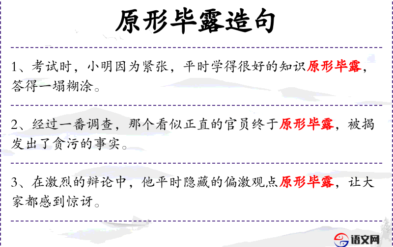 - 原形毕露:这个成语源自**传统文化,强调在特定情况下人的真实本质会被揭示。