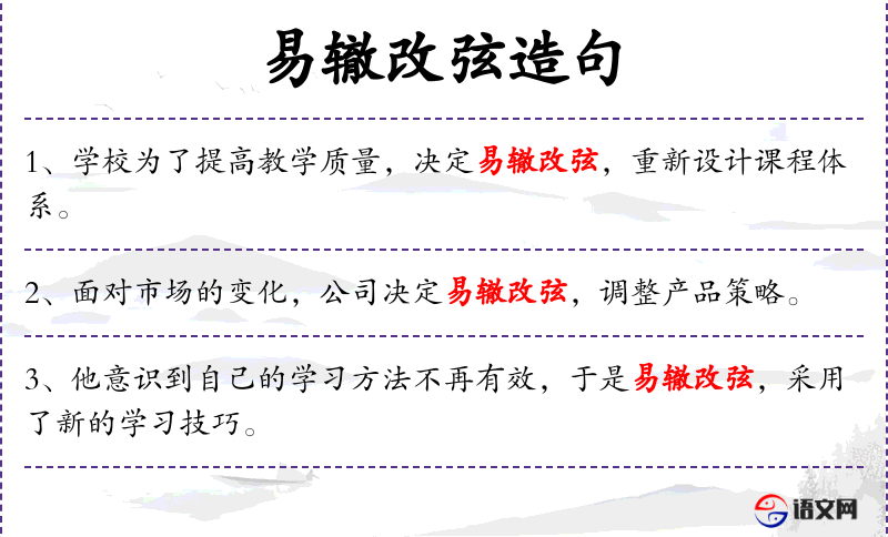 - 易辙改弦:比喻改变方针或方法。