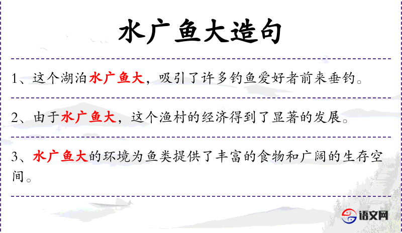 3. 【水广鱼大】 广:广大。水面宽的地方鱼肥大。比喻事物的发展由环境决定。