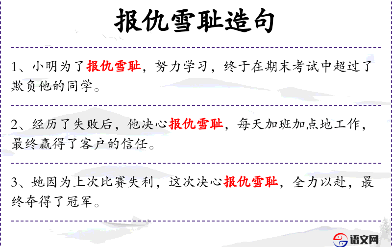 - 文化背景:在**文化中,“报仇雪耻”是一个传统的观念,强调通过正当手段洗清耻辱。
