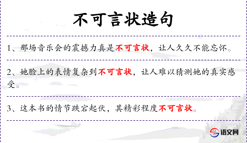 1. 【不可言状】 言:说;状:描绘。无法用言语形容。