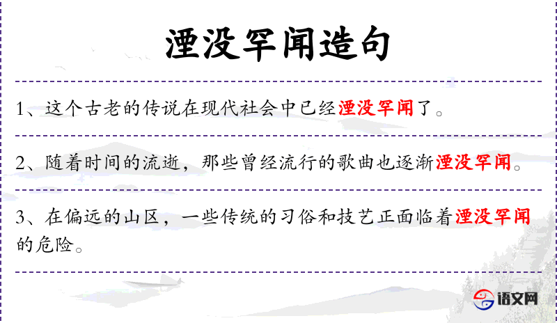 1. 【湮没罕闻】 - 湮:埋没;无闻:没有知道。名声被埋没,没人知道。