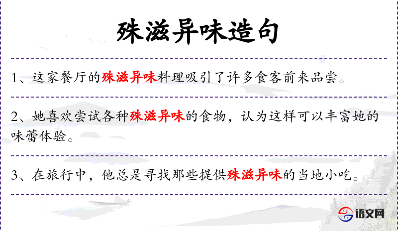 5. 【殊滋异味】 - 奇异的滋味。指美味佳肴。