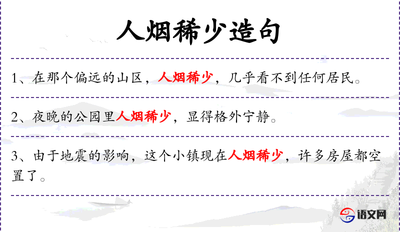 1. 【人烟稀少】 人烟:指住户。指住户少。
