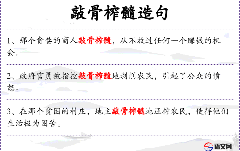 - 敲骨榨髓:形容极度压榨或剥削,常用于比喻。