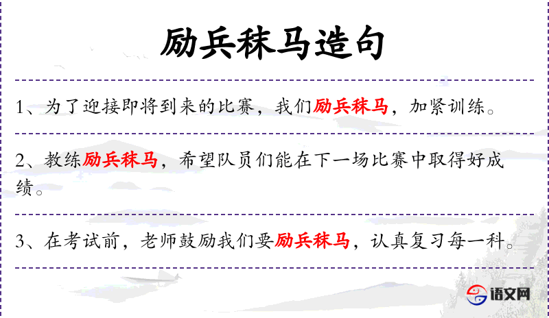 句子:“为了迎接即将到来的比赛,我们励兵秣马,加紧训练。”