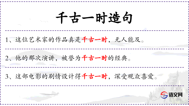句子中的“千古一时”暗示了该的长期影响和短暂的重要性。在文化中,这样的表述可能与历史上的重大**相关,如“千古一帝”、“千古绝唱”等。