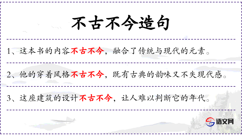 - 不古不今:表示既不是古代的也不是现代的,介于两者之间。