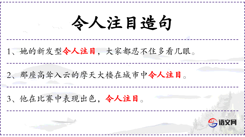 - 令人注目:引人注目、备受瞩目、备受关注