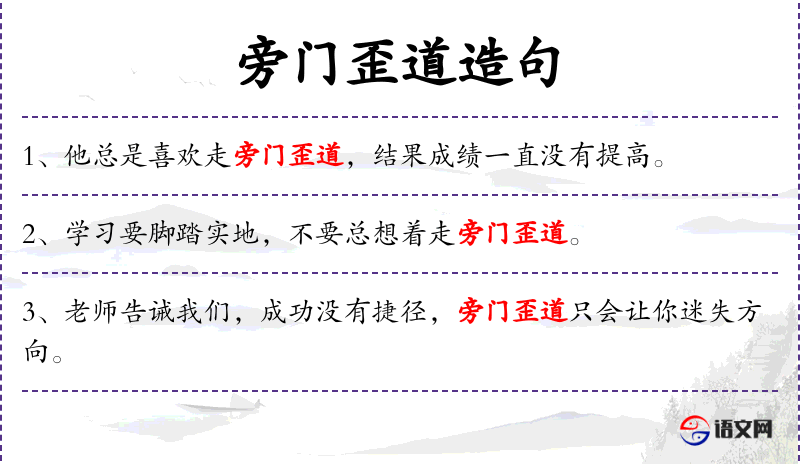 - 宾语补足语:成功没有捷径,旁门歪道只会让你迷失方向