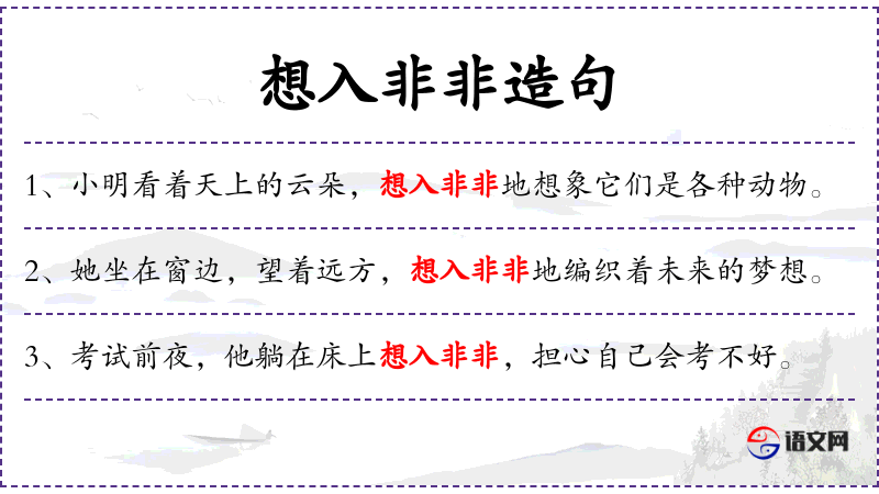 “想入非非”这个成语源自**用语,原指想象进入一个非现实的境界。在现代汉语中,它常用来形容人的思想脱离实际,进入幻想状态。
