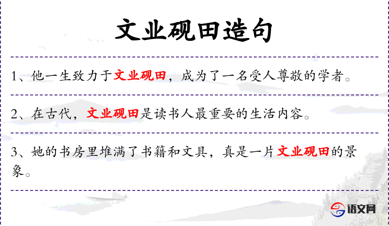 - 文业砚田:比喻学术研究或文学创作的领域。