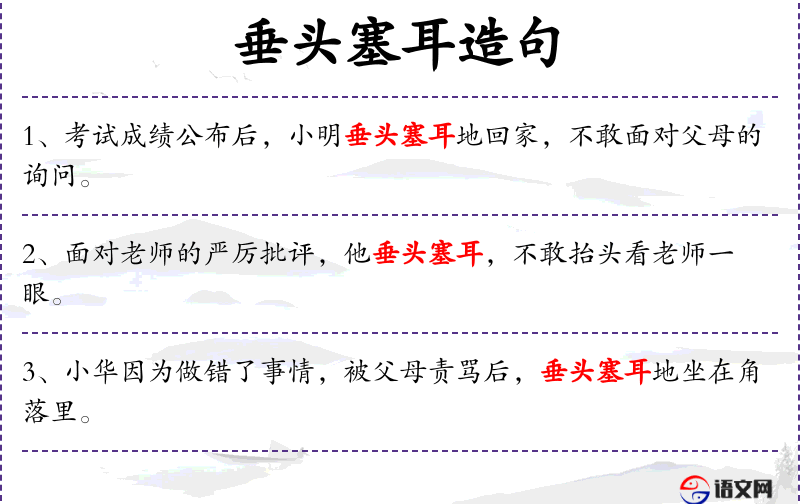 - 垂头塞耳:低头不语、无精打采