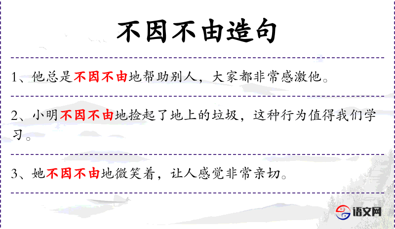 - 不因不由地:副词短语,表示自然而然地,不由自主地。