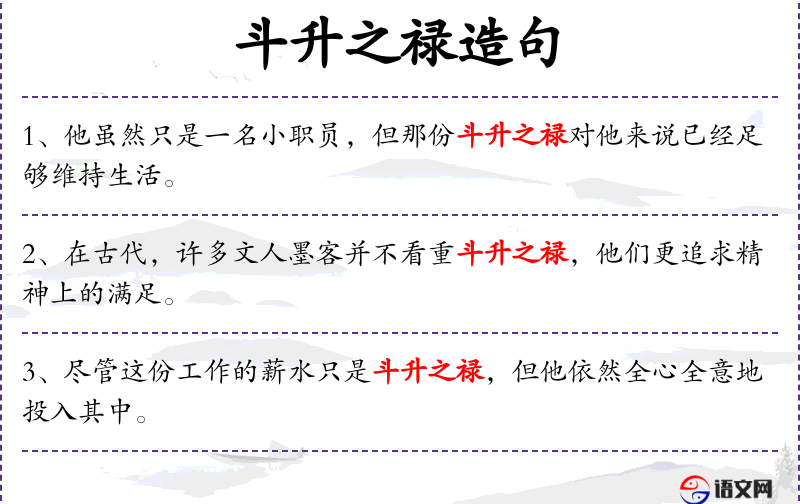 “斗升之禄”是一个成语,源自*古代的计量单位,比喻微的薪水或收入。这个成语反映了**传统文化中对于物质和精神追求的平衡观念。
