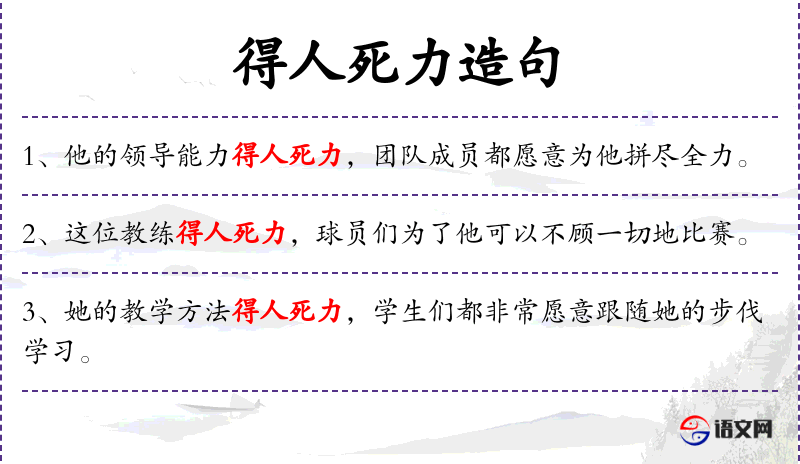 - 宾语:无明确宾语,但“得人死力”隐含了宾语“团队成员”