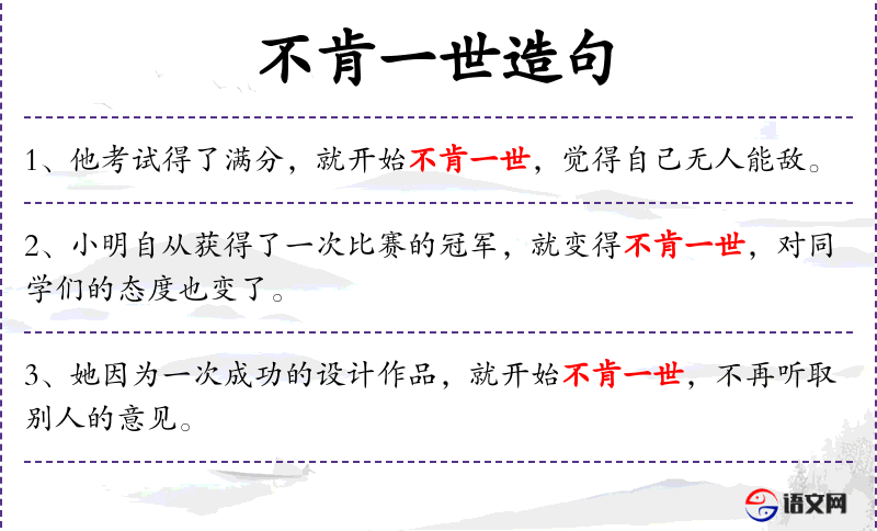 - 成语、典故:“不肯一世”可能源自“不肯一世之人”,形容人自大、傲慢。