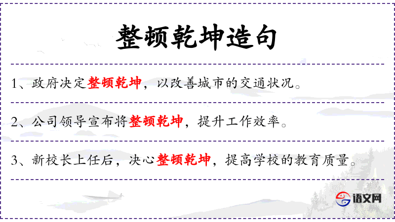 - 宾语:将整顿乾坤,提升工作效率