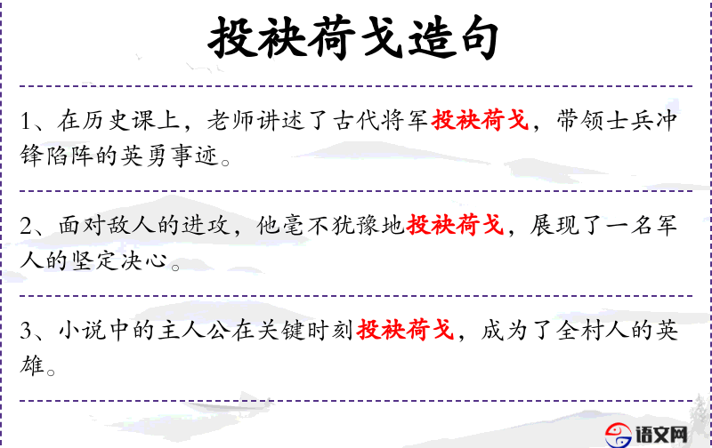 - 投袂荷戈:比喻准备行动,投身于某项事业。