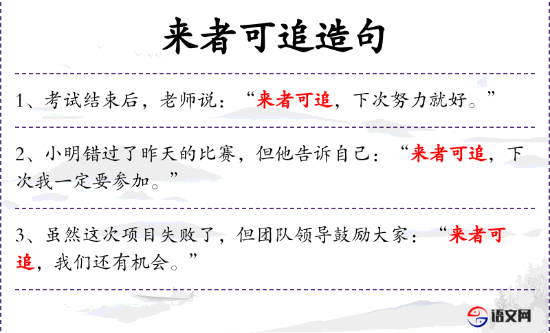 4. 【来者可追】 可追:可以补救。过去的事已无法挽回,但是未来的事还来得及赶上。