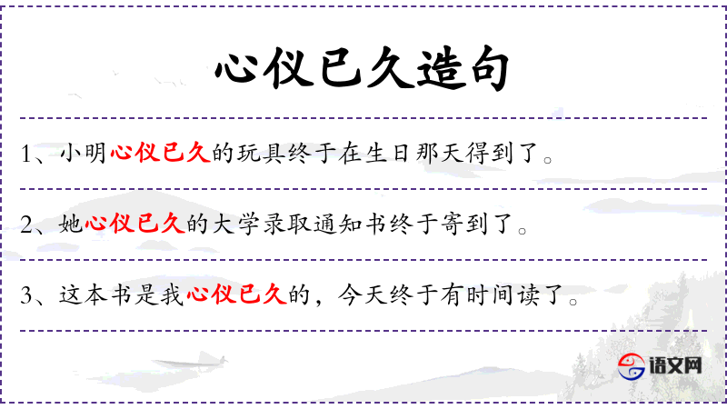- 定语:心仪已久的