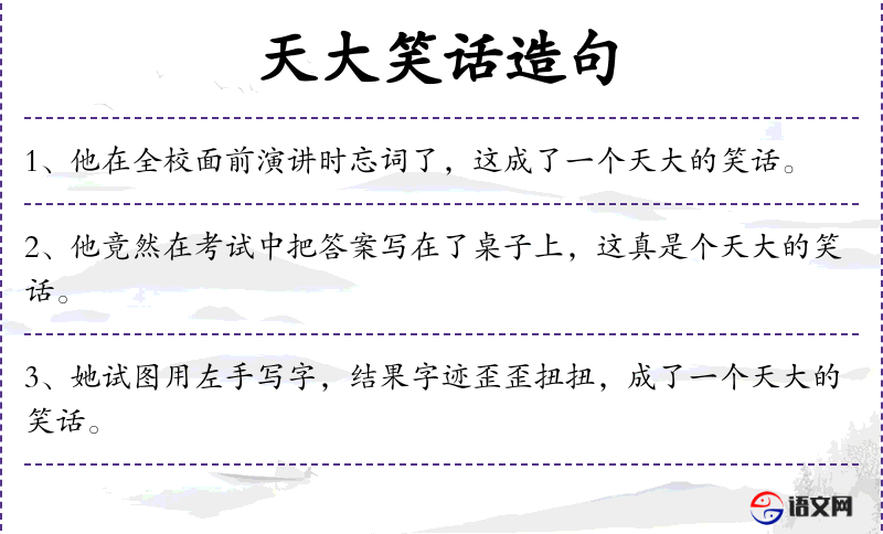 - 天大的笑话:名词短语,表示非常可笑的事情。