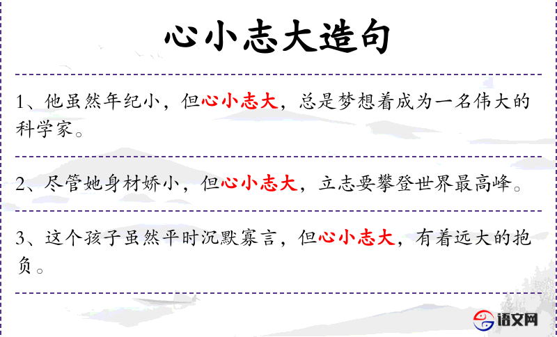 句子:“这个孩子虽然平时沉默寡言,但心小志大,有着远大的抱负。”