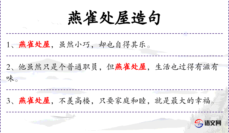 2. 【燕雀处屋】 - 比喻生活安定而失去警惕性。也比喻大祸临头而自己不知道。同“燕雀处堂”。