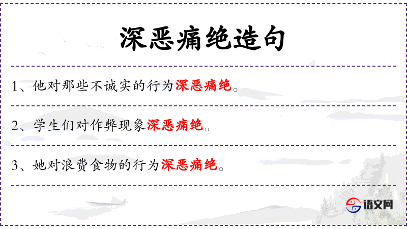 1. 【深恶痛绝】 - 恶:厌恶;痛:痛恨;绝:极。指对某人或某事物极端厌恶痛恨。