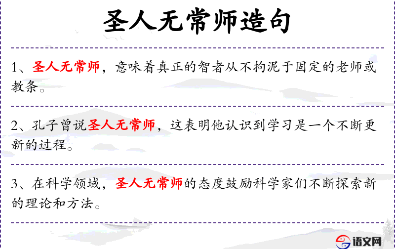 - 文化背景:*传统文化中,“圣人无常师”强调学不应局限于单一的来源或方法,而应广泛吸收各种知识和经验。