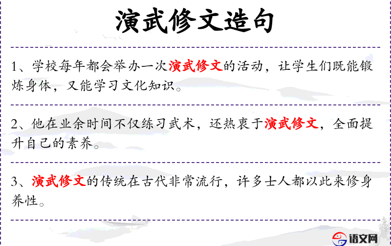 4. 【演武修文】 - 指演练武艺,修习文章。