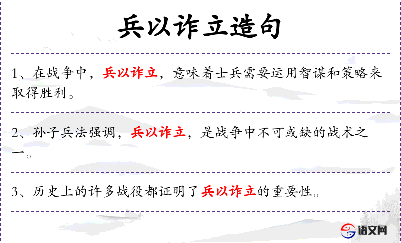 - 兵以诈立:这是一个成语,意思是军队通过欺诈手段取得胜利。