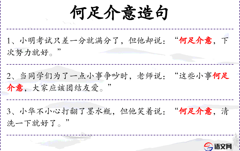 - 成语:“何足介意”是一个成语,源自《左传·僖公二十五年》,意为不值得在意。