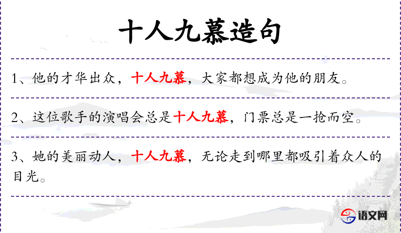 - 十人九慕:成语,意思是很多人都很羡慕。