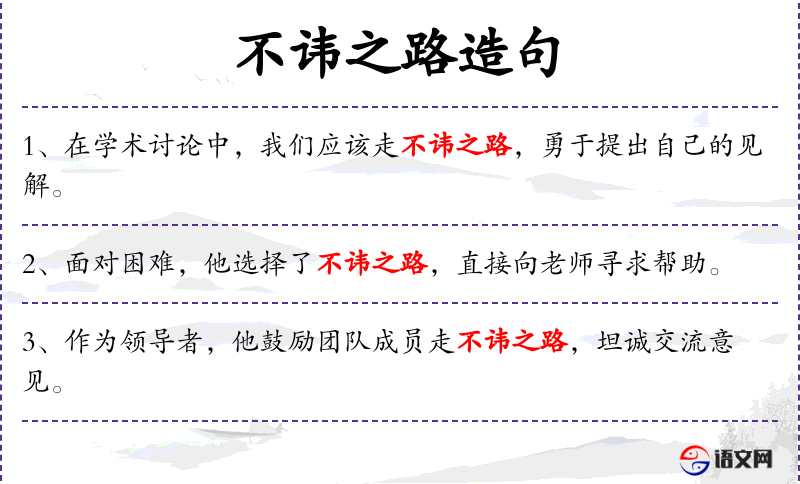 - 走不讳之路:直译为“走不避讳的道路”,意指坦诚、公开地讨论问题。