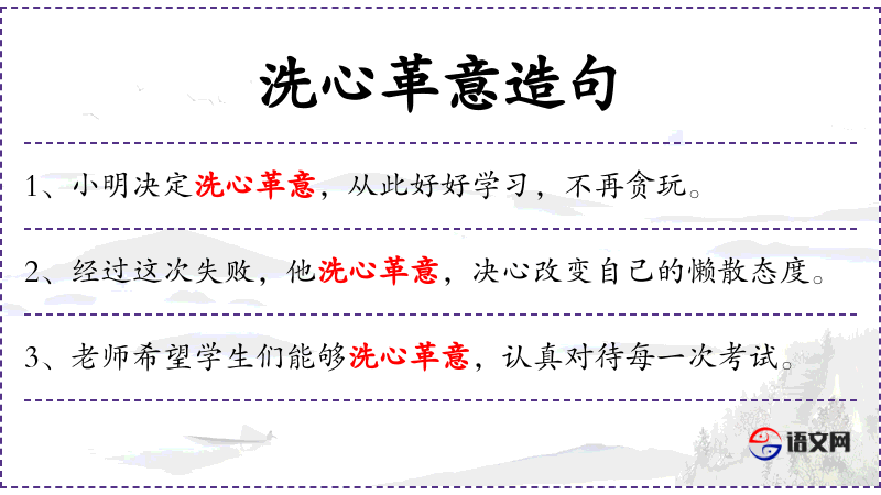 3. 【洗心革意】 - 指彻底改变旧有心思和意向。同“洗心革志”。