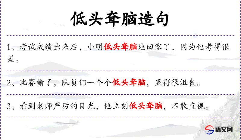 - 他在演讲比赛失败后,心情低落,低头耷脑地走下台。