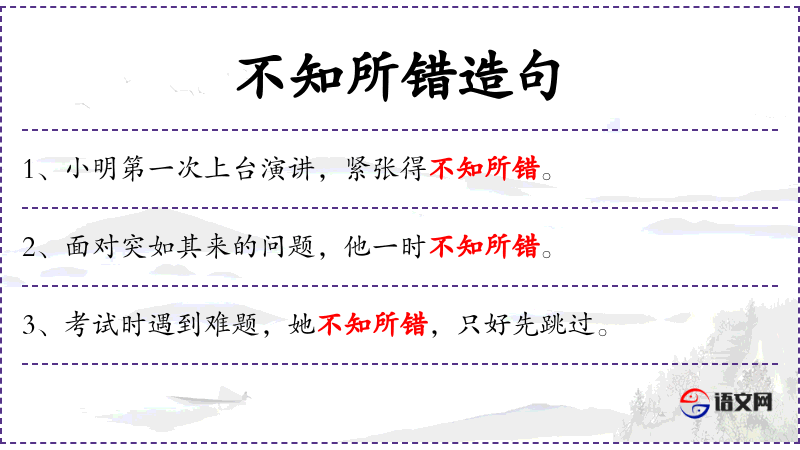 1. 【不知所错】 - 错:同“措”,处置。不知道怎么办才好。形容处境为难或心神慌乱