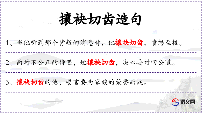 - 攘袂切齿:这个成语源自古代,形容极度愤怒或决心。在文化中,表达愤怒和决心时,人们可能会使用类似的成语。