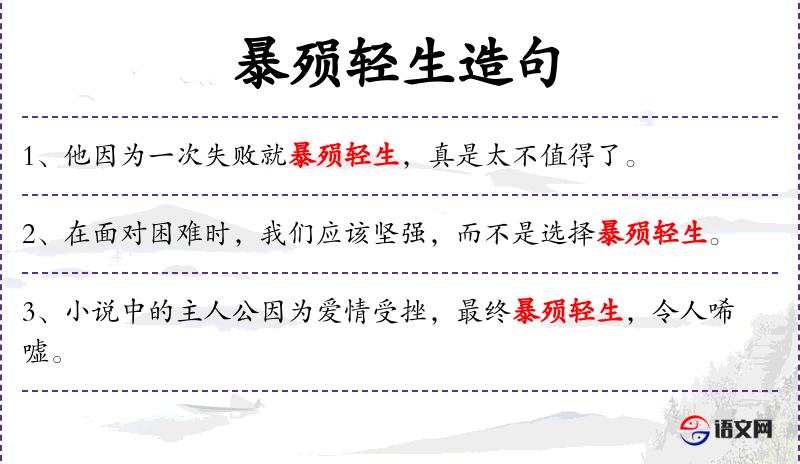 5. 【暴殒轻生】 - 暴:突然;殒:死亡;轻生:把生命看得很轻。指突然间自杀身死。