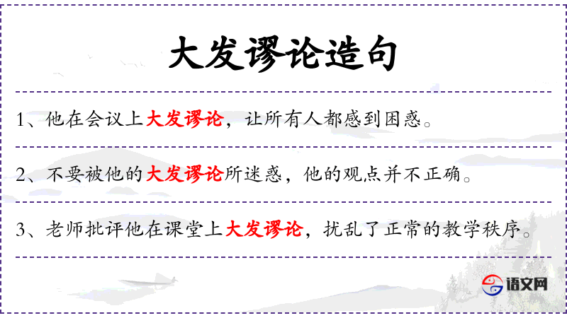 - 大发谬论:指大量发表错误的、无根据的言论。