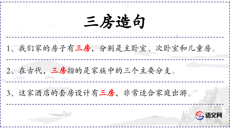 1. 【三房】 - 指明堂﹑明房﹑丹田之房; 指同宗族分衍出来的三个支派; 三房妻室。